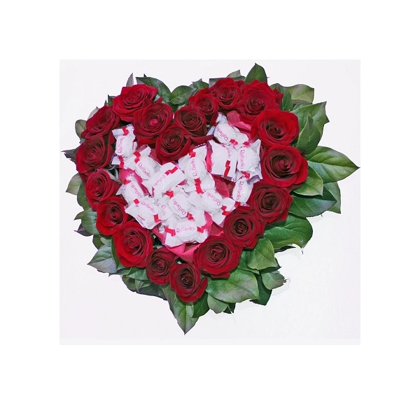 Сердце с Raffaello - композиция из красных роз и конфет Rafaello