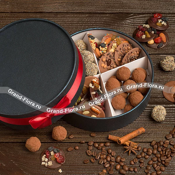 Стандартный: трюфель - 30 шт., медианты - 12 шт., коробка.